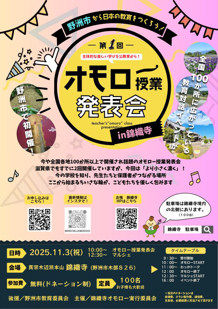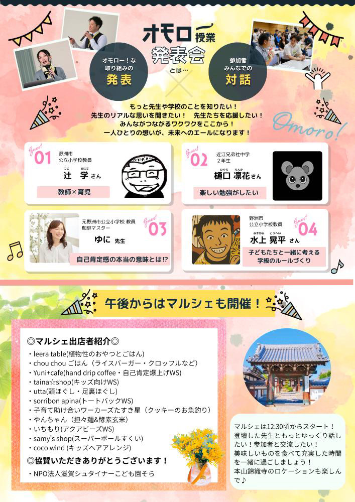 【野洲市】11/3(月・祝)マルシェも開催!親子で未来を考える「オモロー授業発表会」 in 錦織寺