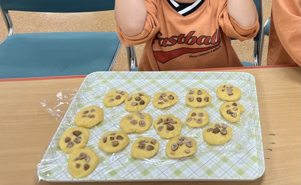 食べれるどんぐりと食べれないどんぐりのお勉強をして、どんぐりクッキーをみんなで作って食べます♪