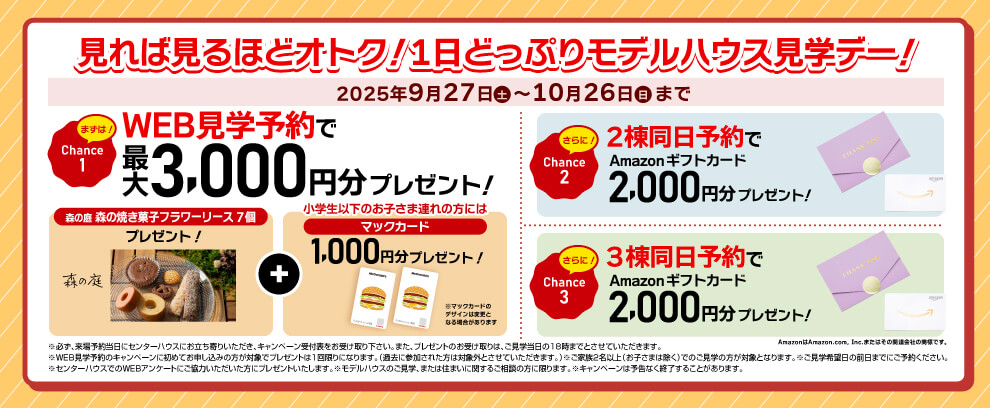 ・複数のモデルハウスを見学されてもプレゼントは1回限りになります。