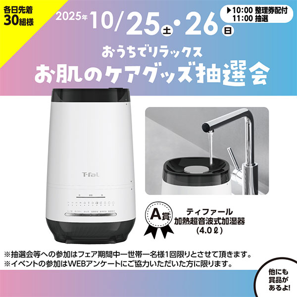 10/25(土)26(日)お肌のケアグッズ抽選会
