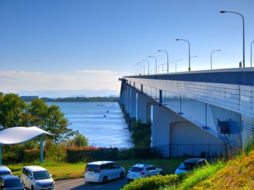 琵琶湖大橋と琵琶湖の眺望を楽しめる休憩スペースもあるので、ぜひご来場の際は素晴らしい景色もお楽しみください!