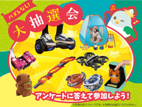 イベント参加後のアンケートにお答えいただくと、お菓子かおもちゃが当たる抽選会にご参加いただけます♪