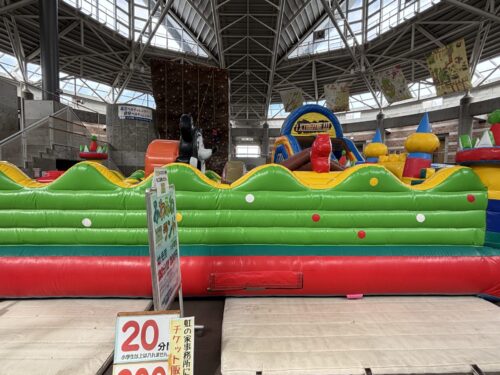 中に入ると、幼児用のふわふわランドやクライミング体験などの大型遊具がありました!