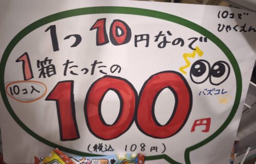 定価で販売されているお店もあるので商品名のわかる写真は控えますが、1つ10円から買える商品や、定価の約90%OFFという特価品も!