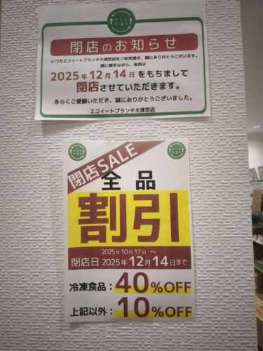 ブランチ大津京の「ecoeat」が12月14日閉店!最後のチャンス!感謝の気持ちを込めた「閉店セール」をお見逃しなく!