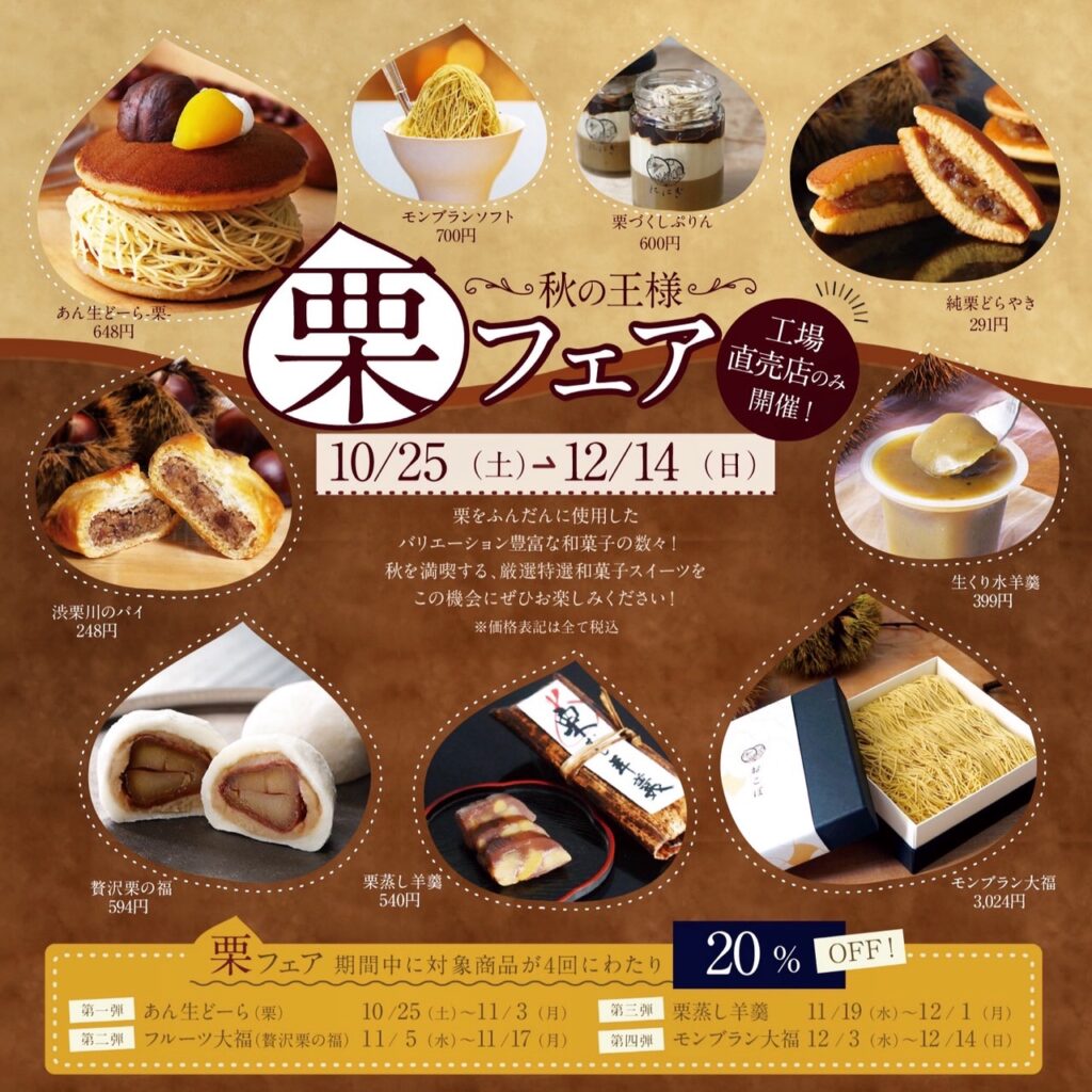定番人気の「純栗どらやき」や「栗大福」、ふんわりとろける「モンブランソフト」、そして栗の濃厚な味わいが魅力の「あん生どーら」など、栗好きにはたまらないラインナップが揃います!