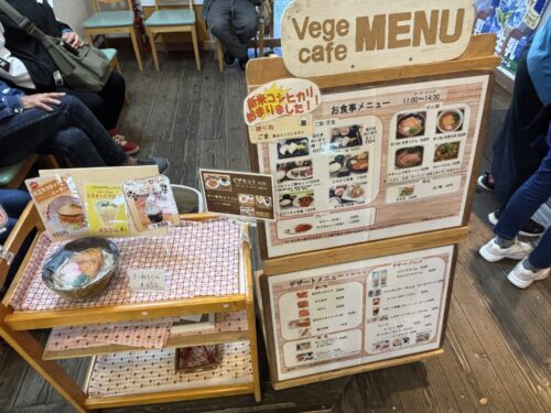 「べジカフェ」では、定食メニューから軽食、ケーキセットなどのスイーツが販売されていました。来店したのが日曜日のお昼過ぎ。少し待ち列ができるほど賑わっていました。