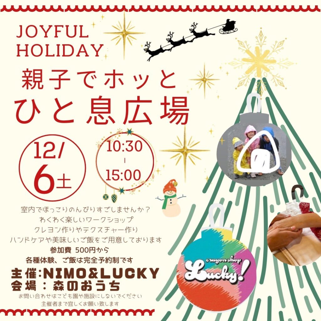 2025年12月6日(土)、今年もクリスマス前に「親子でホッとひと息広場」が地域コミュニティ森のおうちにて開催されます。