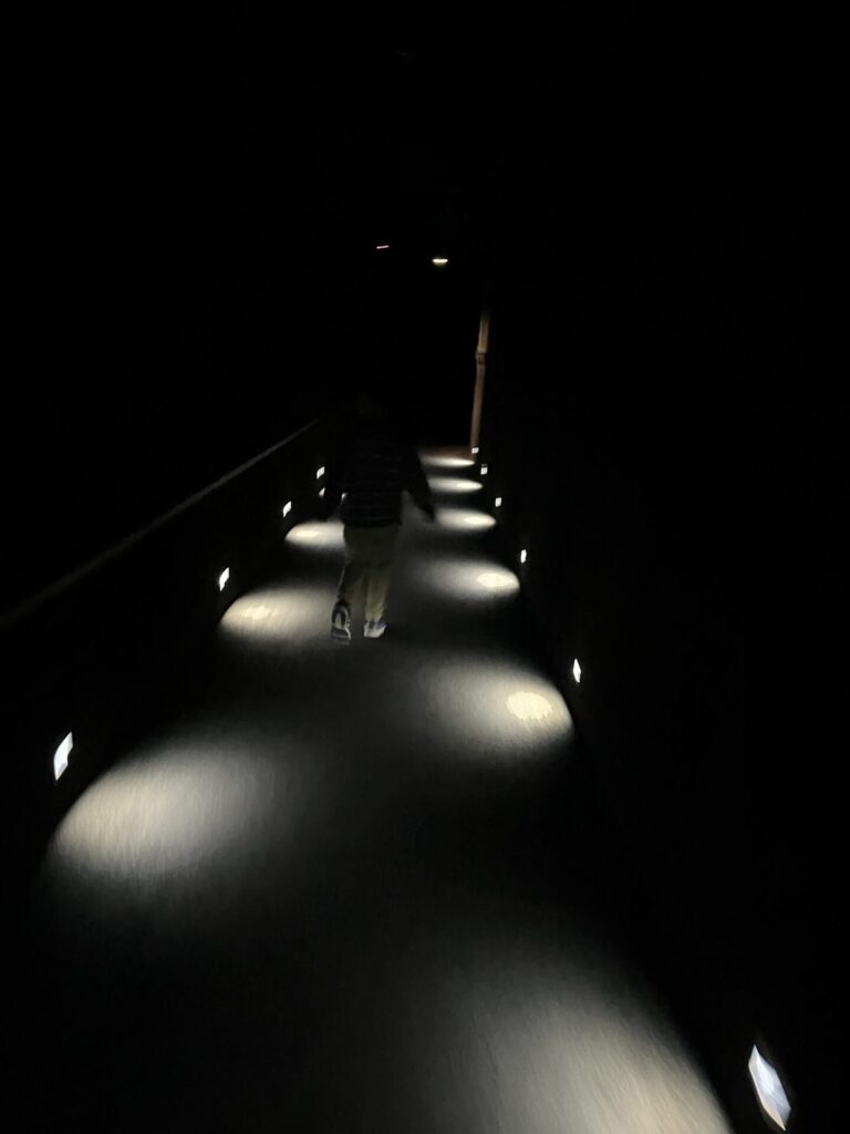 入場すると、暗い通路を歩きます。この時点で5歳の子供は「帰りたい…」。