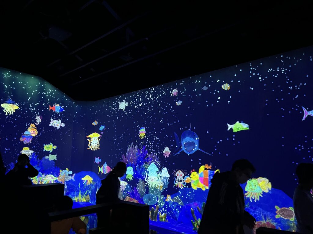 完成した絵をスキャンすると大きなスクリーンに登場!
