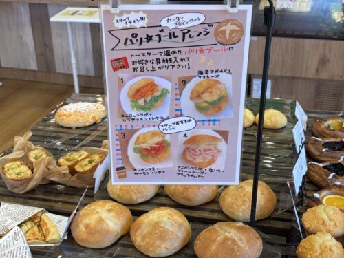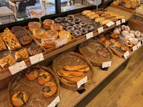 スーパーマーケット「マックスバリュ」のすぐ近くにあるベーカリーカフェ。店内に入ると焼きたてパンのいい香り♪