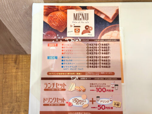 ドリンクメニューもあり、お得なセット割も用意されています。