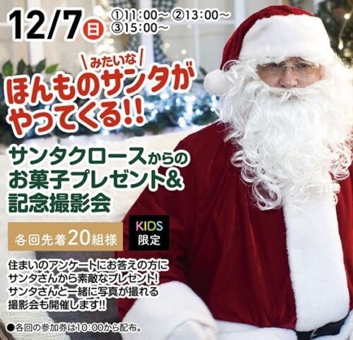 本物みたいなサンタさんがやってくる!お菓子をもらって、写真を撮って、楽しいクリスマスの思い出を作ろう♪参加無料!豪華おもちゃ抽選会や選べる有名スイーツプレゼント、1年の感謝を込めた最大8000円相当の特典などお楽しみがいっぱい☆ハウスセレクション彦根へ家族でお出かけしよう!!