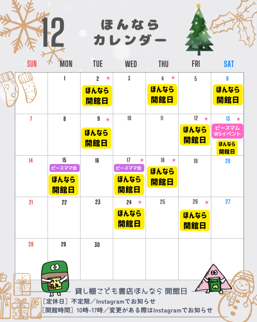 12月ほんなら開館日!&12/13(土)ピースマムクリスマスイベント