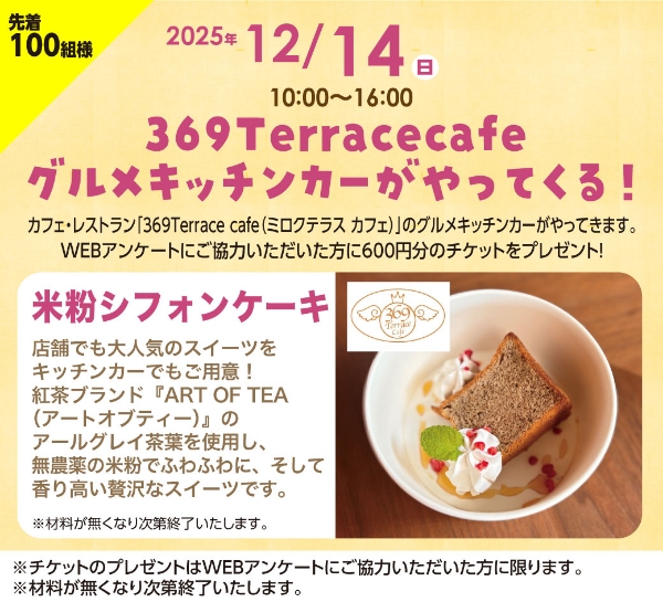 12/14(日)369Terracecafeグルメキッチンカーがやってくる!