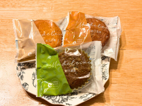 滋賀県産の食材を使用した、3種類の味が楽しめるマドレーヌ。温めたトースターに1分いれると焼きたてのような味わいに♪