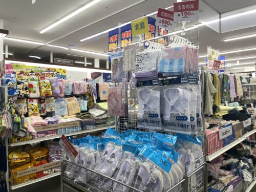 新学期や新年度の準備に良さそうな上靴やスクールシャツ・タオル類も広告の品に。