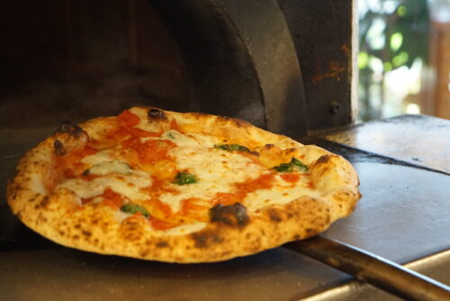 専用窯を使って、450℃以上の高温・短時間で焼き上げることで、香ばしい小麦の風味と、外はカリッ、中はもちっとした食感が楽しめるのだそう。