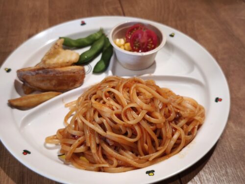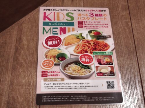 小学生未満のお子様は、お子様うどんかパスタプレートのどちらか1人1皿まで、無料で注文できるように。