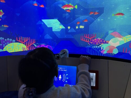 シアター映像を見て、いよいよコンテンツ体験へ!QRコードをかざして遊びますが、初期設定のままだと表示名が「番号」になっています。館内の端末で自分のニックネームに変更できるので、ぜひ設定を。ランキングに名前が載ると、子どもたちのやる気が全然違いますよ♪