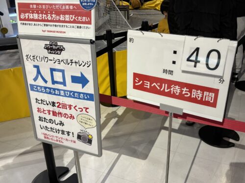 なかでも一番人気は、本物のパワーショベルを操作できる「ざくざく!パワーショベルチャレンジ」!40分待ちの表示がでていることもありました!列が短いタイミングを見計らって並ぶのがコツです。