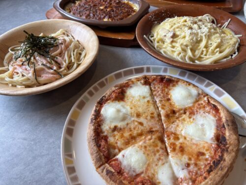 メニューをみると、専用の「キッズメニュー」という枠組みはないのですが、メインメニューの多くがお子さまメニューのような優しい価格帯! 「パスタもピザも、どっちも食べたいな」という時でも、みんなでシェアしながら色々頼めます。