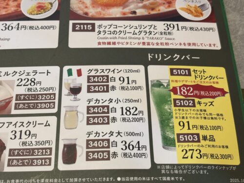 さらに嬉しいのがドリンクバー!キッズドリンクバー(小学生以下)は、セットでも単品でも100円(税込)でした!ドリンクバーコーナーにある 「ゼロシュガーレモネード」はドリンクバーではサイゼリヤだけで飲める(※2026年1月現在)というちょっぴり特別感!