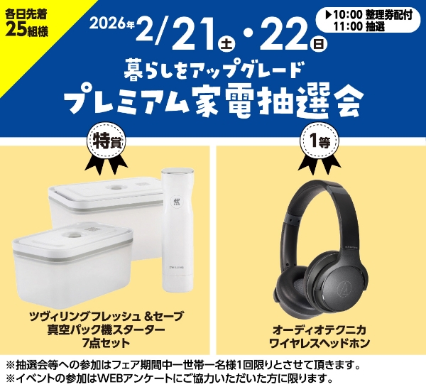 2月21日(土)22日(日)暮らしをアップグレード プレミアム家電抽選会を開催!