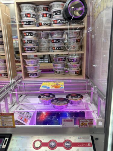 定番のぬいぐるみやフィギュアだけでなく、カップ麺やドリンク、さらにはティッシュペーパーなどの生活必需品まで揃っています。