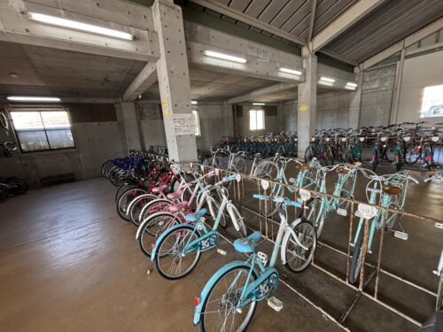 広場にはレトロで珍しい自転車がたくさん並んでいます。