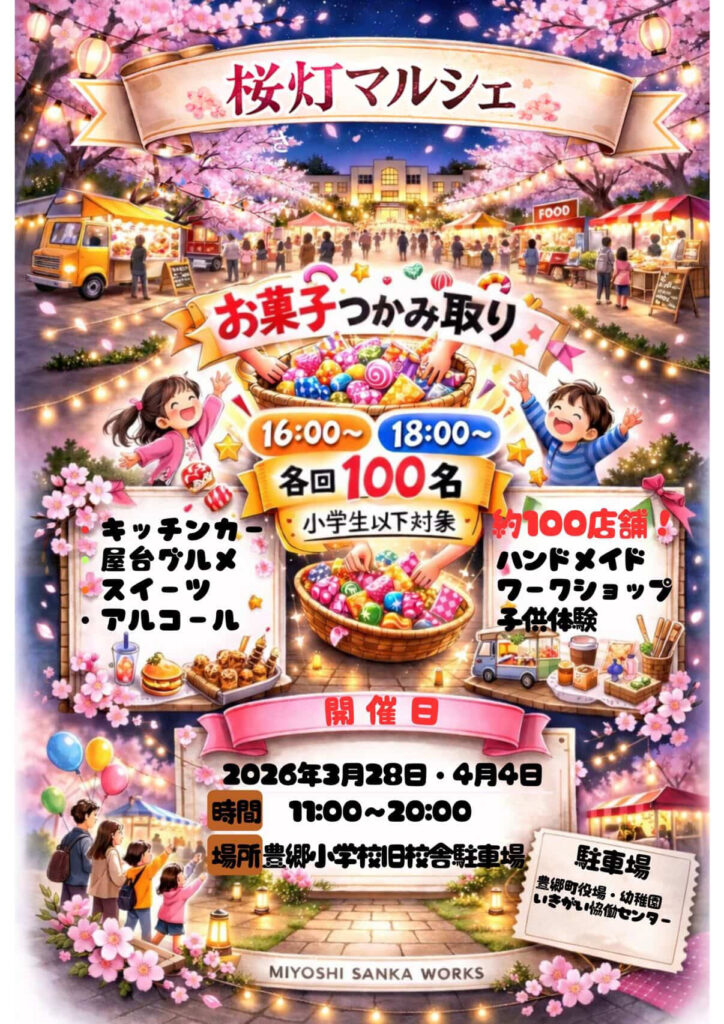 春のおでかけにぴったりな、家族で楽しめる「桜灯マルシェ」が2026年3月28日(土)、4月4日(土)に開催されます!