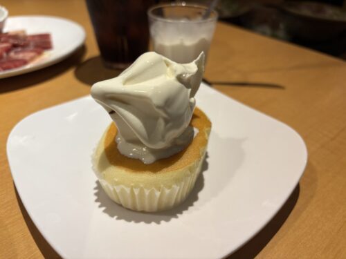 お肉をたっぷり味わった後は、種類豊富なデザートタイム!きんぐコースでは、やわもちアイスやプレミアムロールケーキ、ショコラケーキなども食べ放題になります!今回は期間限定で復活していた「北海道チーズの蒸しケーキ」を軽くあぶり、ソフトクリームをトッピングするアレンジに挑戦してみましたが、これが感動の美味しさでした!美味しくて楽しくて、家族みんなが幸せな食事時間を過ごせました。