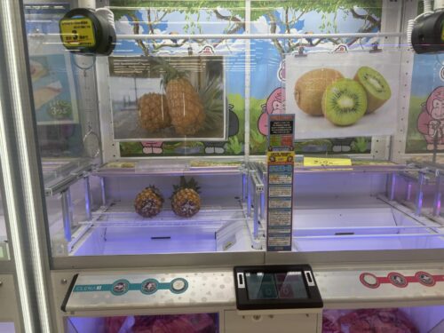 100円UFOキャッチャーではお菓子以外にも調味料や果物、豪華景品まで!