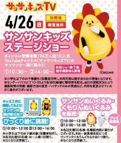 子どもたちに大人気のYouTubeチャンネル「サンサンキッズTV」のキャラクターがやってくる♪
