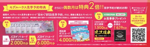 4月は偶数月特典で、WEB見学予約のプレゼントがなんと2倍に!