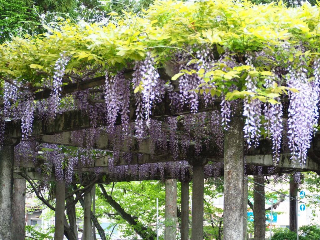 立木神社の美しい藤棚をはじめ、長く垂れ下がる花房が圧巻の三大神社「砂擦りのふじ」、珍しい一本立ちの藤がある志那神社、そして惣社神社の四社が舞台です。