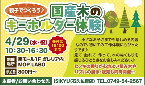4/29★親子でつくろう♪国産木のキーホルダー体験