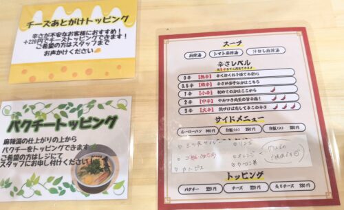 スープは麻辣湯、トマト麻辣湯、汁無し麻辣湯の3種類から選べます。