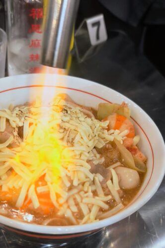 こちらは「0辛麻辣湯」の炙りチーズトッピング。