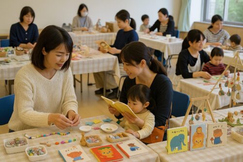ハンドメイド雑貨の販売や占いブース、子ども向けアクティビティなど、家族でゆっくり過ごせる空間が魅力。