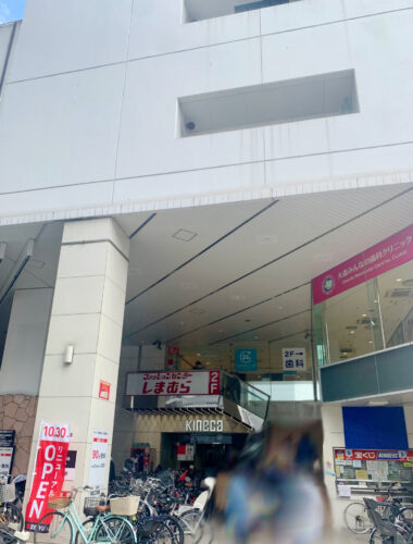 「しまむら 西友大森店」は、2階フロアにあります。外側の階段か、「キネカ」と書かれた入口にあるエレベーターでも行けます。