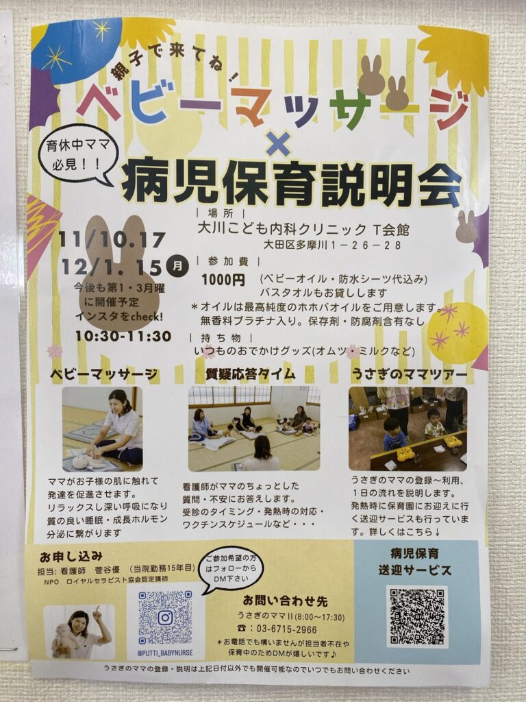 親子で来てね!ベビーマッサージ×病児保育説明会