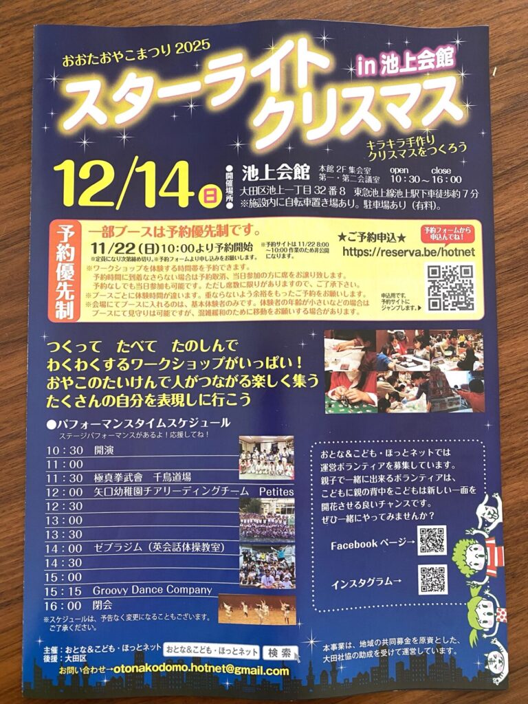 【池上】12/14(日)おおたおやこ祭り2025 スターライトクリスマスin池上会館