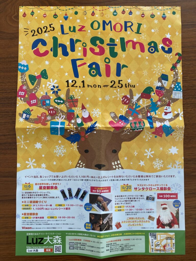 【大森】12/6(土)ミニ望遠鏡作りと星空観察会12/20(土)サンタクロース撮影会@ラズ大森