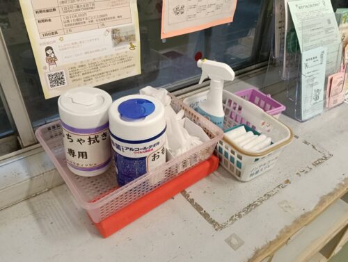 その他に、おもちゃも充実しており、感染症対策の除菌シートも完備してあります。