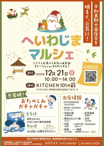 12/21(日)、平和島駅前の商店街で「へいわじまマルシェ」が開催されます♪