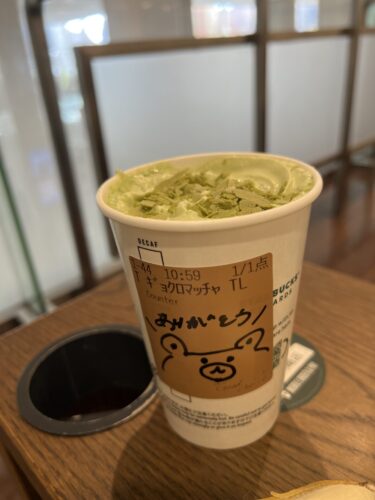 冬季限定 玉露抹茶ラテで一息。これがまた驚きの美味しさでした ( ˊ̱˂˃ˋ̱ )