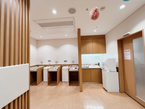 また5F(ユニクロ奥)には広い授乳室があり、おむつ交換台、粉ミルク用温水器、電子レンジ、手洗い場(石鹸あり!)、ソファーも完備。スタバで休憩する前後に立ち寄れるので、赤ちゃん連れでも安心です。