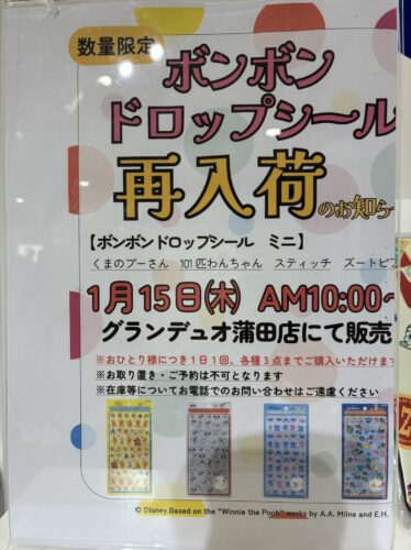 【1/15(水)10:00〜】蒲田駅ディズニーファンタジーショップに「ボンボンドロップシール」再入荷♪