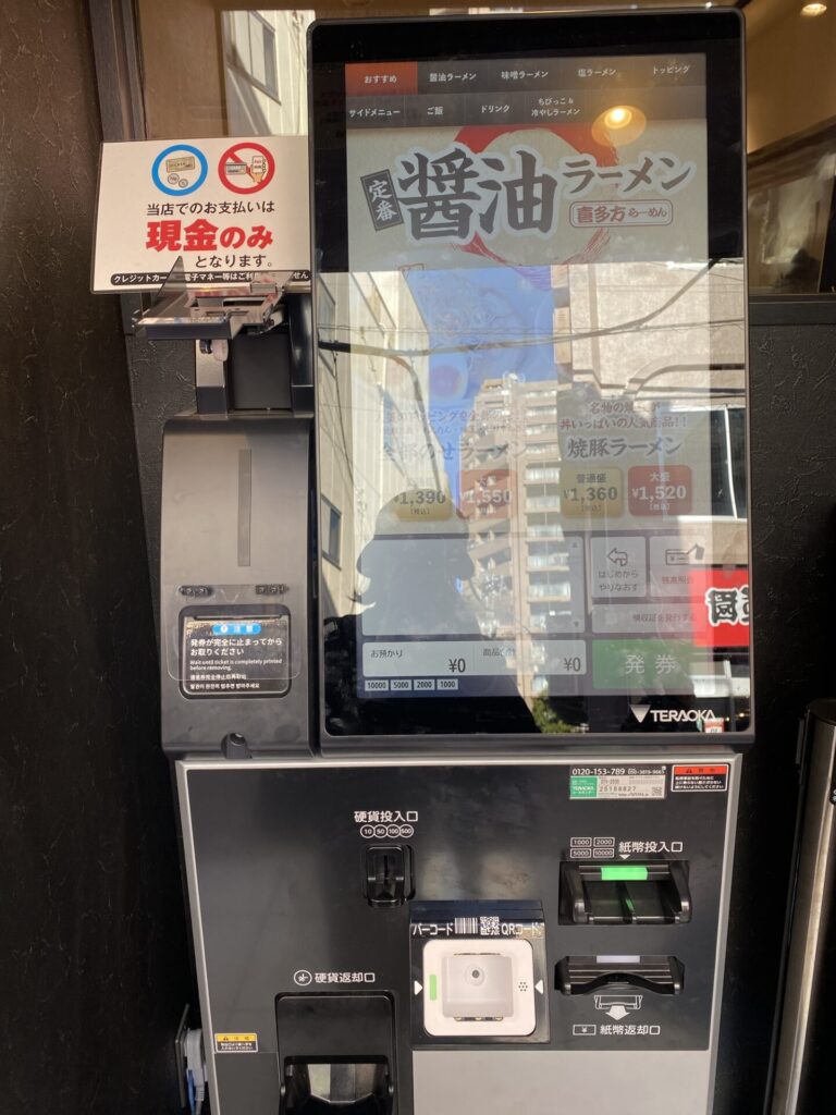 先に券売機で食券を買ってから待ちますが、お支払いは現金のみです!